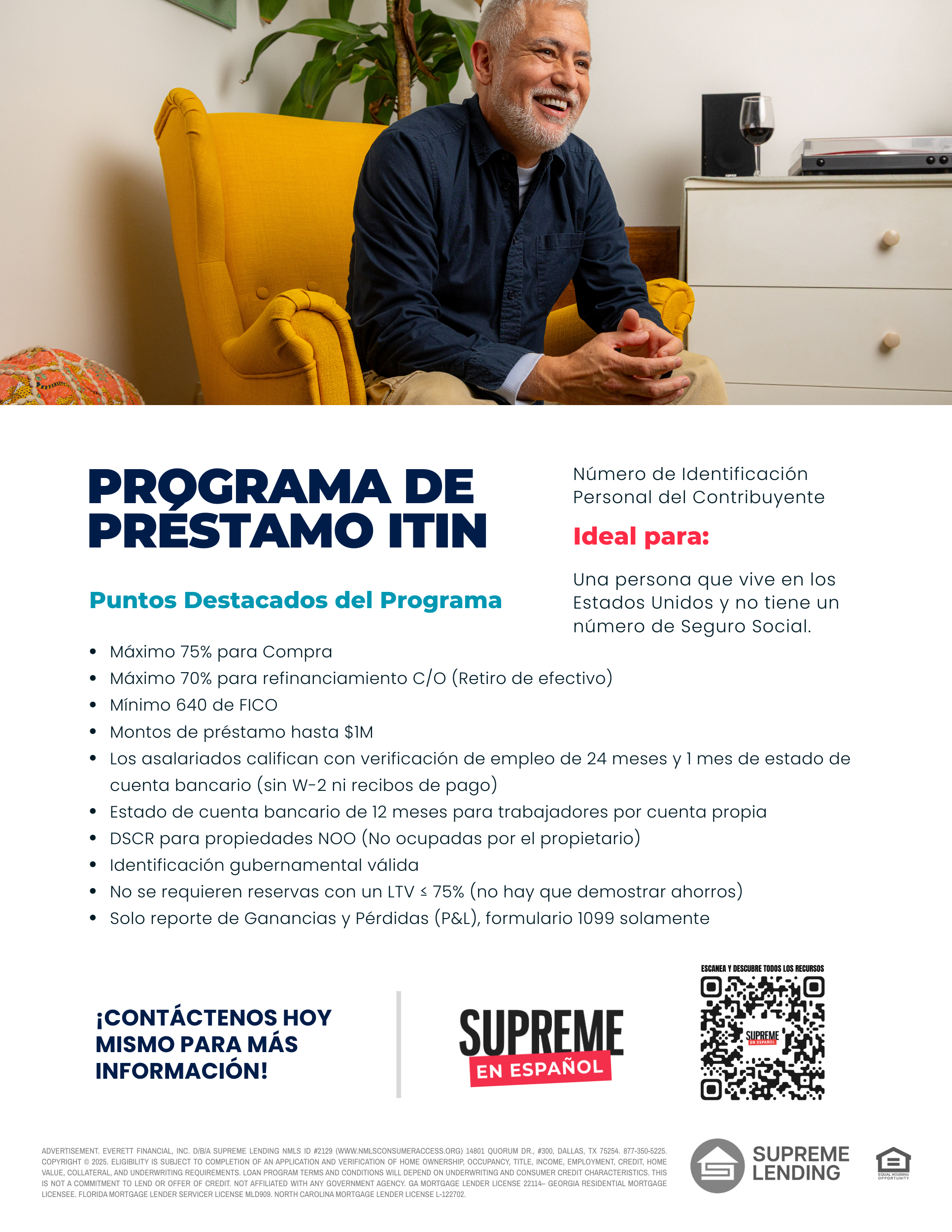 Si otro prestamista le ha dicho que no, eso no significa que el sueño de tener casa propia esté fuera de su alcance. Muchas situaciones financieras únicas simplemente requieren experiencia, creatividad y un conocimiento más profundo de los programas de préstamos disponibles. Una conversación con un oficial de préstamos de Supreme Lending puede ayudar a descubrir soluciones que otros tal vez no ofrezcan. Siempre vale la pena tener esa conversación.